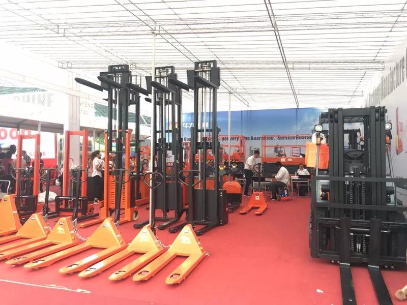 牛力本次參展展出了共三十多個(gè)機(jī)械產(chǎn)品,產(chǎn)品包括:搬運(yùn)車(chē)系列、升高車(chē)系列、叉車(chē)系列、高空作業(yè)平臺(tái)系列、汽車(chē)尾板系列等幾大系列和三十多種型號(hào)的設(shè)備。