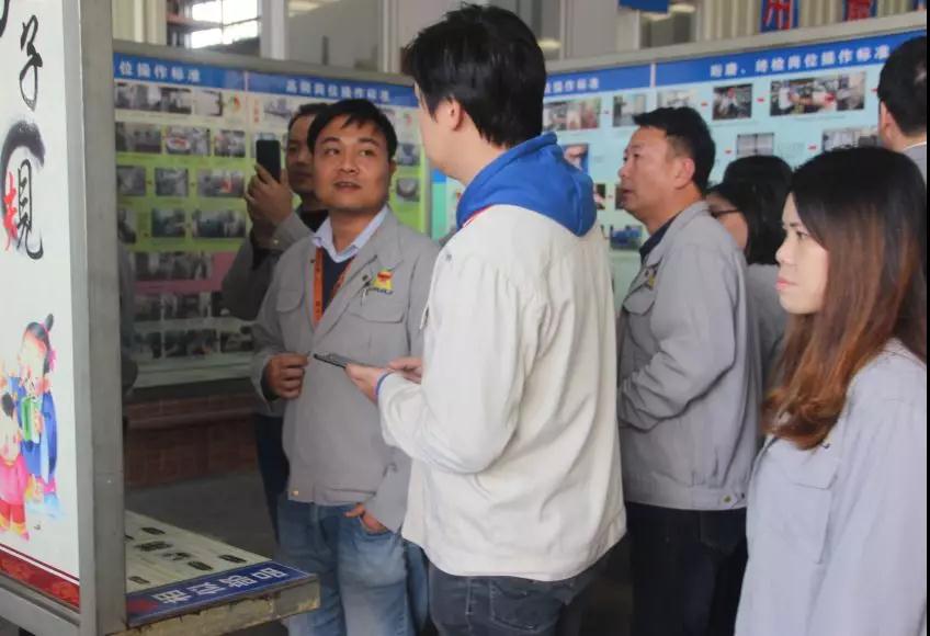 參觀團(tuán)學(xué)習(xí)永堅(jiān)員工培訓(xùn)看板
