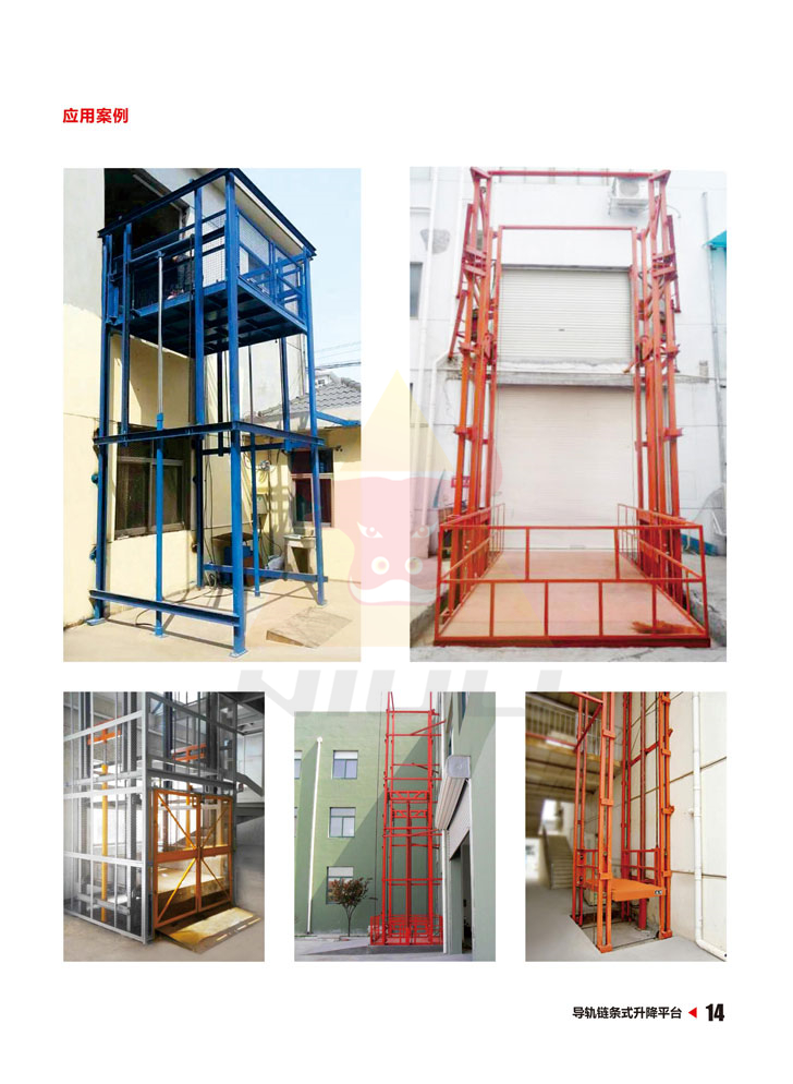 導(dǎo)軌式升降機(jī)是用于貨物升降的械設(shè)備,采用液壓油缸作為主要?jiǎng)恿?,通過重型鏈條和鋼絲繩傳動(dòng),保證機(jī)器運(yùn)行的絕對(duì)安全。無(wú)需地坑和機(jī)房,特別適合于有地下室、倉(cāng)庫(kù)改造、新建貨架等,具有安裝維修方便、美觀、安全、操作方便。