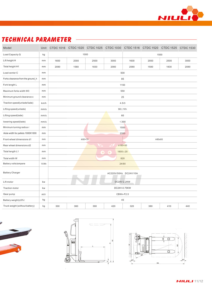 Lifting height(mm)  1600、2000、2500、3000  1600、2000、2500、3000